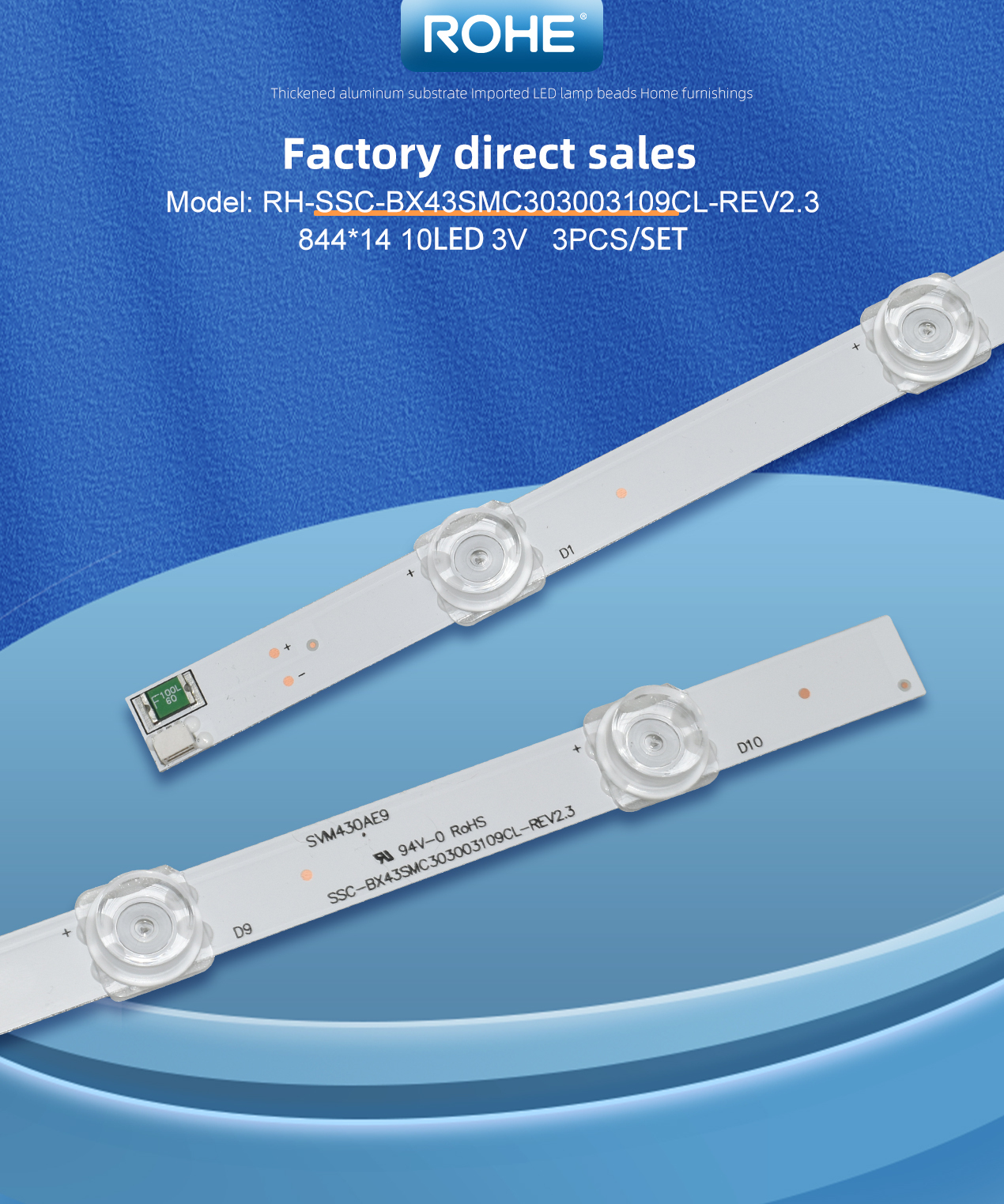 ROHE RH-1606 SSC-BX43SMC303003109CL-REV2.3 844*14MM 10LED 3V For TV Led Backlight Strip