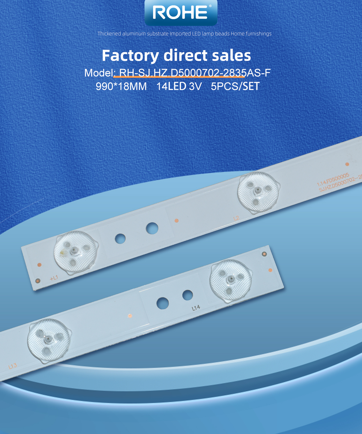 ROHE RH-1624 RH-SJ.HZ.D5000702-2835AS-F 990*18MM 14LED 3V For 50inch TV Led Backlight Strip