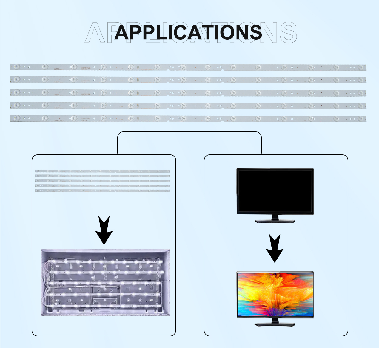 High brightness and uniform backlight: Provides stable and uniform brightness, enhancing the visual effect of TV images.